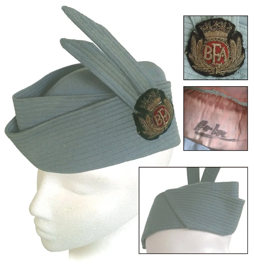 BEA was formed on 1st January 1946, and this scarce female hat with bullion badge complemented the early military style BEA uniform before it was redesigned in 1960 at the birth of the 'Jet-Set' era. BEA and BOAC (British Overseas Airways Corporation) merged in 1974 to become British Airways.